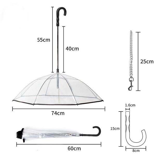 Dog's Transparent Umbrella With Traction Chain Removable Umbrella Pet Products