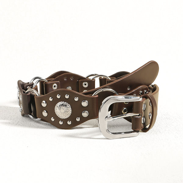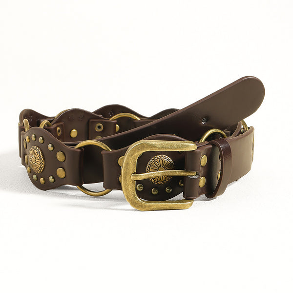 Vintage Belts For Both Men And Women With Handsome Riveted Metal Buckle Punk Hip Hop Fashion Accessories